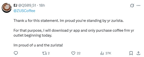 This is probably the consequence of ZUS Coffee frequently being in the media spotlight. For some reason, ZUS Coffee seems to invite unwanted attention ranging from a social media campaign questioning the provenance of its name and logo to working with alleged pro-Zionist brands.