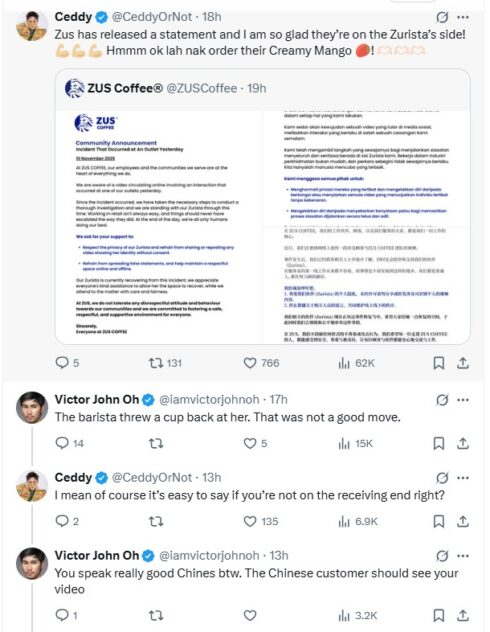 Social media addicts will by now be aware of a clip going viral of a ZUS Coffee staff having a heated exchange with a customer who sounds like a Chinese Mainlander.