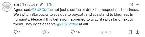— ZUS Coffee® (@ZUSCoffee) November 10, 2025