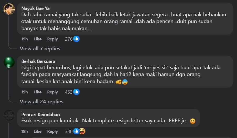 “If already know many people don’t like you, it’s better to resign immediately. Why burden your brain to shoulder the public ridiculing you,” advised one sensible commenter.