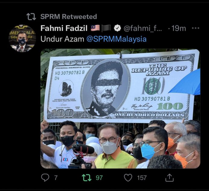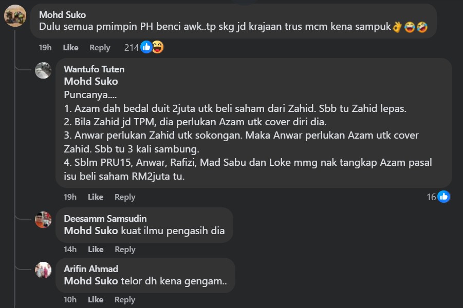 One commenter pointedly recounted how the ruling Pakatan Harapan (PH) government could make a U-turn from their uproar against Azam prior to the 15th General Election (GE15) to have suddenly developed a liking for the latter.