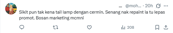 However, netizen @mohfirds who observed the video said that repainting the vehicle should not be difficult since the spray did not hit the tail lamp and glass.