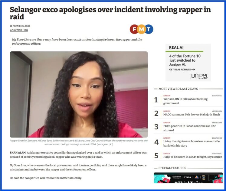 I recall reading a similar raid on a spa that catered exclusively to ladies in Subang Jaya, where insinuations of impropriety were said to be taking place.