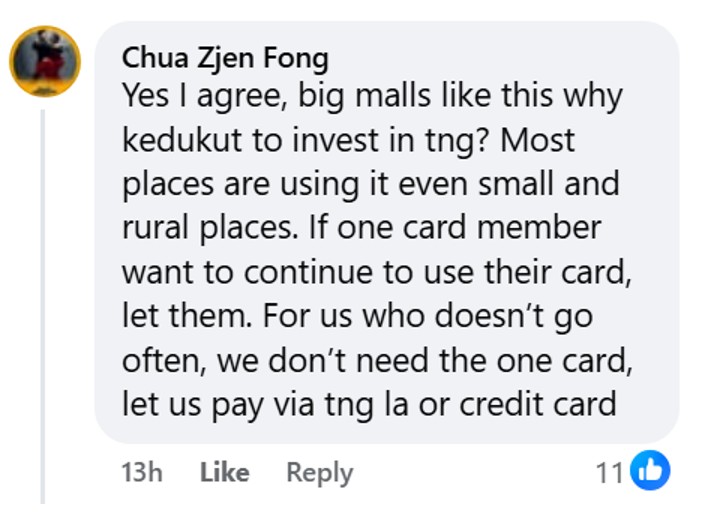 Another commenter also pointed out that there were plenty of very large signboards directing non-ONECARD members on how to pay.