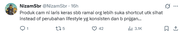 Then there was @NizamSbr pointing out that such products were popular since many people wanted a short cut to good health instead of the rigorous regiment required to maintain it. The critics continue to pour into the comment section.