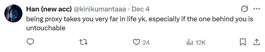 It was also argued that being a proxy had plenty going for it, especially if the person backing the proxy is “untouchable”.