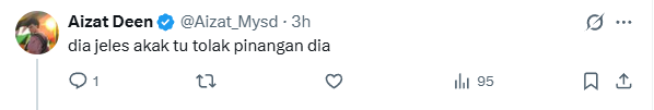 “He is jealous the lady rejected his proposal,” said @Aizat_Mysd while @akulereAu pointed out the simple truth that the lady was certain to “back up” the migrant since he was her husband.