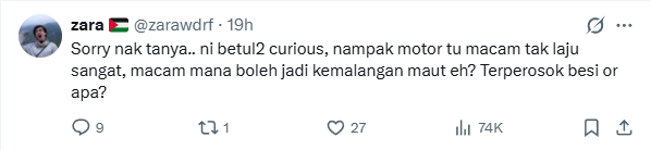 Then there was @zarawdrf wondering how the collision would result in fatality since the motorcyclist was not going at a very fast pace.