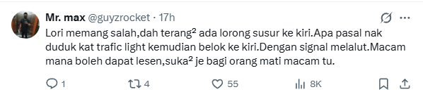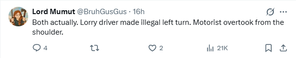 Also, @HitsunaK83338 said this was not an isolated case. “There’s a lot of lorries and buses that turns in the opposite direction that they signal. It is getting out of hand,” he added.