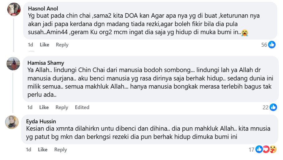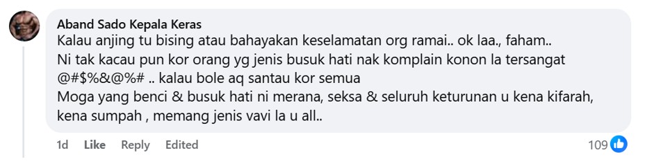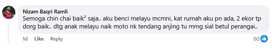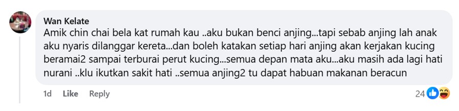 Another commenter also had nothing good to say about Malay youth who came on motorcycles to kick at the stray dogs near his home. “Hateful behaviour” was the damning verdict.