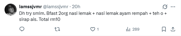 “Hopefully it becomes popular” said netizen @EternalDeeds while @iamssjvmr said the bill for breakfast totalled to only RM10 for two people.