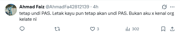 Towards his comment, a netizen replied that they would still vote for PAS. “Even if they placed a wood as a candidate, they will vote for PAS,” said the netizen.