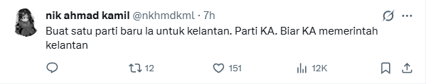 Perhaps the most relevant comment went to @nuarroslizi who asked if the Kelantanese folks would vote for Khairul Aming instead of PAS if he really went into politics.