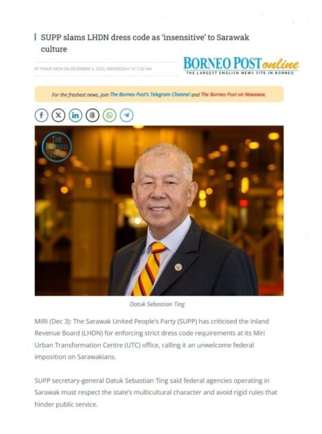 The Malaysian Action for Justice and Unity (MAJU) co-founder further lamented that although “LHDN is only the latest offender”, the incident follows a consistent pattern whereby Federal agencies operating in Sarawak “feel empowered to impose their own cultural values instead of respecting Sarawak’s diverse reality”.
