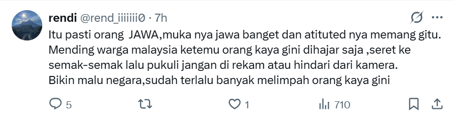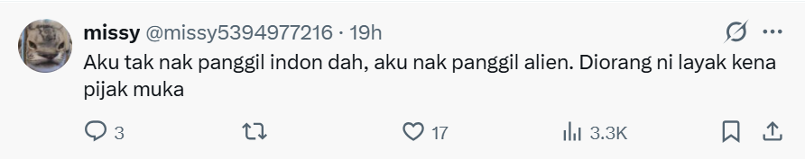 “I don’t even want to call him Indonesian. I want to call him an alien. Such people deserve to have their faces stepped on,” said @missy5394977216.