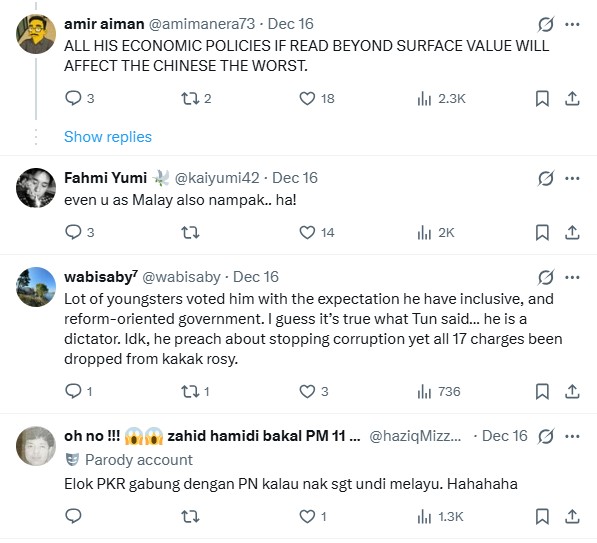 “Yet, still he’s losing both votes,” penned amir aiman (@amimanera73) on X. “ALL HIS ECONOMIC POLICIES IF READ BEYOND SURFACE VALUE WILL AFFECT THE CHINESE THE WORST.”