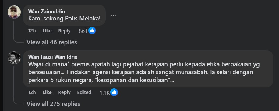 Interestingly, it is a tale of two halves in the Malaysiakini BM’s (Bahasa Malaysia) FB post given its readership tended to side the cops in this instance with one commenter reminding that “even dress code applies when entering a casino”.
