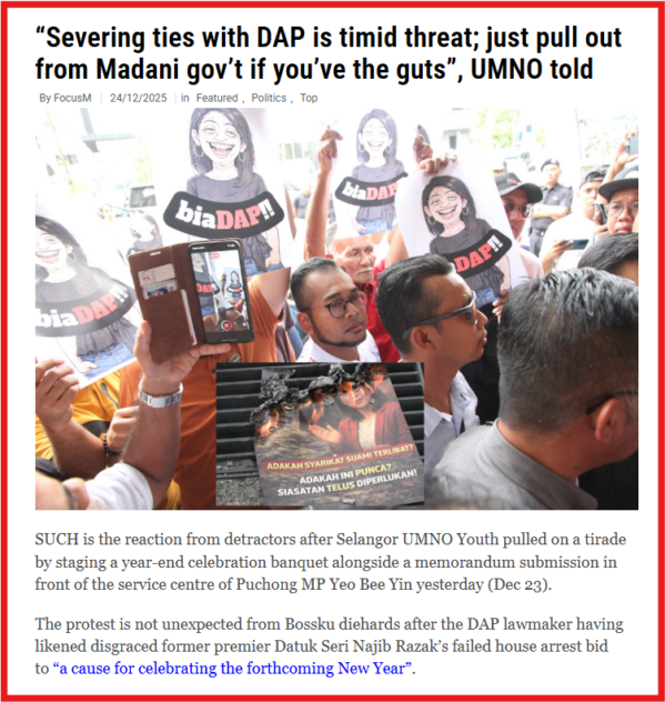 In fact, this political “purr” only makes Yeo Bee Yin look untouchable and DAP look invincible while exposing UMNO’s own weakness. It will make UMNO looking reactive, fractured and powerless.