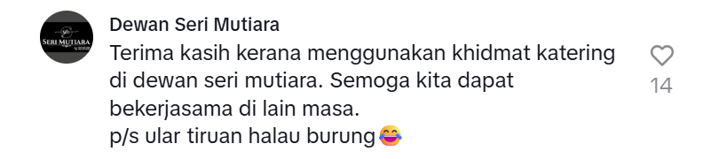 Scanning through the comment section, readers will come across the owner of the venue, Dewan Seri Mutiara, explaining that the fake snakes were used to frighten off the birds.