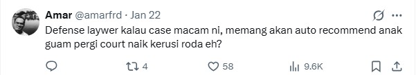 Aside from (@bongkersz), fellow X user izzi (@IzzraifHarz) expressed surprise at the 26-year-old Salwani requiring a wheelchair for her court appearance.