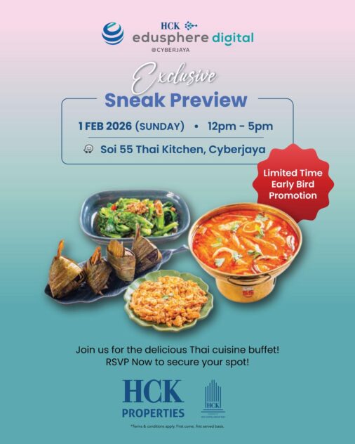 Curious to experience this for yourself? You’re warmly invited to an exclusive Sneak Preview this Sunday at Soi 55 Thai Kitchen, Cyberjaya, where you’ll discover edusphere digital – Prestonia Suites, Cyberjaya’s newest smart living residence.