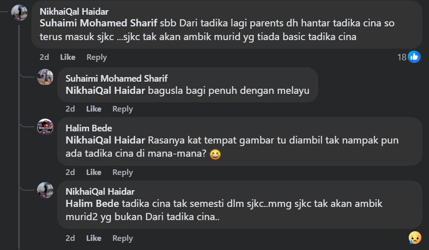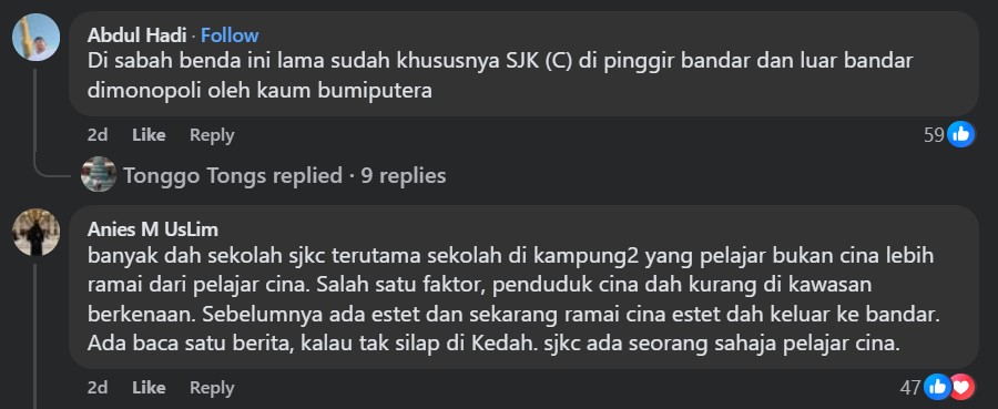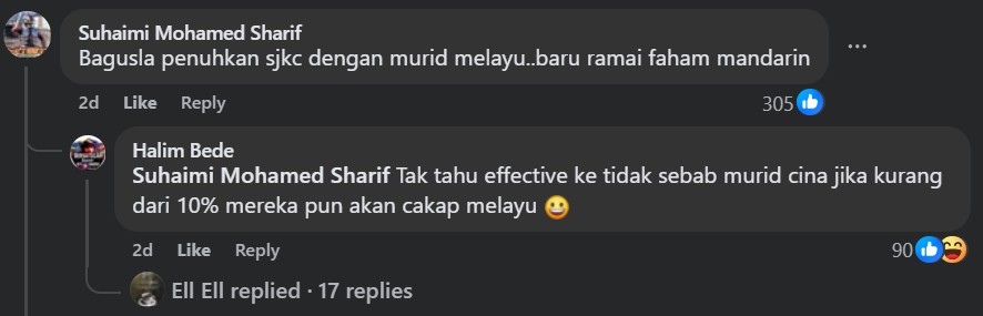 What is striking is the interaction between Malay parents with one encouraged “the proliferation of SJKCs with Malay pupils so more would comprehend Mandarin” while one doubted the effectiveness of Chinese primary schools with 90% Malay pupils given “the kids will end up conversing in Malay”.