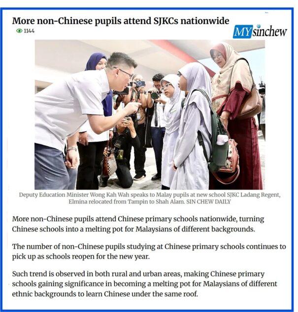 What is certain is that awareness on the ground regarding the value of Mandarin as the lingua franca to trade with China which is today’s the world’s second largest economic power has changed the mindset of Malay parents who are capable of brushing aside rightist political noises.
