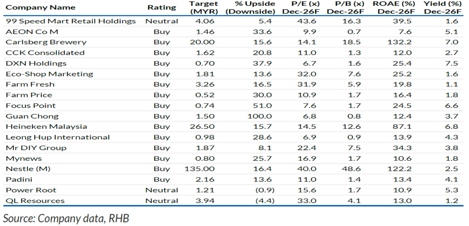 “Other than that, we highlight that a few quality consumer retail players – Eco-Shop Marketing, Mr DIY Group, AEON Co M and Focus Point – are trading at more reasonable or undemanding valuations,” said RHB.