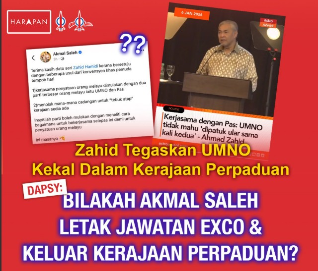 Akmal’s perverse interpretation that “the UMNO president agrees to cooperate in unifying the Malays” is clearly an attempt to confuse the people and disrespect the party’s own stance.