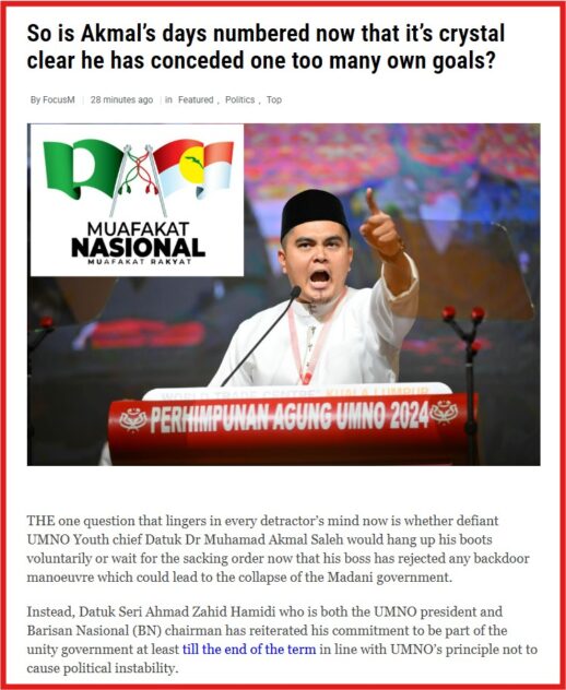 With that, the “exiting Madani government” gimmick orchestrated by UMNO Youth chief Datuk Dr Muhamad Akmal Saleh in recent times has proven to be a political joke that embarrasses himself.