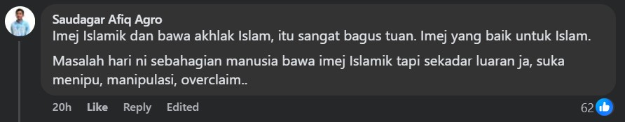 While the Islamic image does portray Islamic morals which is praiseworthy, another commenter argued that “doubts arise given the Islamic image is merely an external portrayal given some people like to deceive, manipulate and overclaim”.