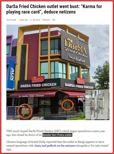 SUCH was the frank feedback by customers of “100% Bumiputera-owned” DarSa Fried Chicken (DFC) which made headlines following the shutdown of its Bandar Seri Putra outlet in Bangi after just one year in operation.