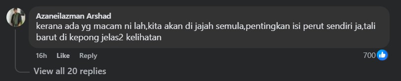 “It’s because there’re people like this that we’ll be colonised again; only care about their own stomachs, very obvious from the action of those stooges in Kepong,” lambasted another.
