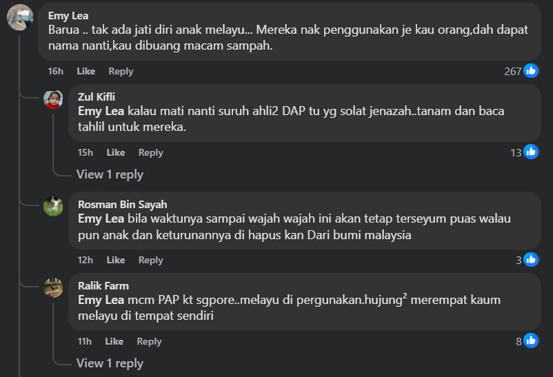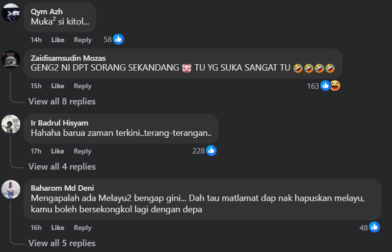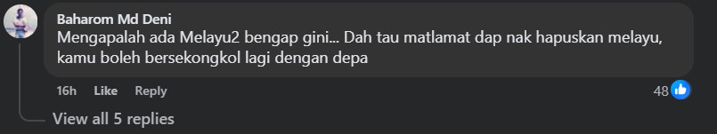 One commenter chastised the Malay DAP members over the irony “of joining forces with the Chinese when the Malays are at odds trying to unite” while another wondered how could they have the heart “to conspire with DAP whose main aim is to destroy the Malays”.