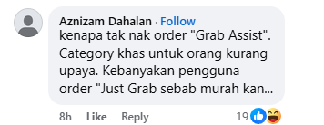 However, Aznizam Dahalan pointed out that the wheelchair bound man should have ordered grab assist instead, a special category for people with disabilities. “Most consumers order Just Grab because it is cheaper,” he said.
