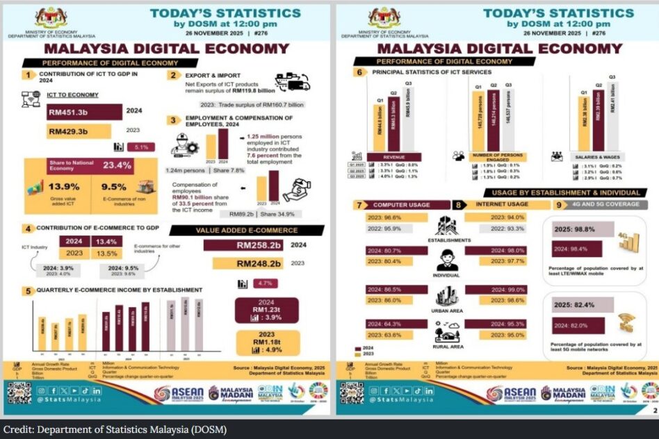 According to data from the Department of Statistics Malaysia (DOSM), Malaysia’s e-commerce sector recorded RM937.5 bil in revenue during the 9M 2025 period.
