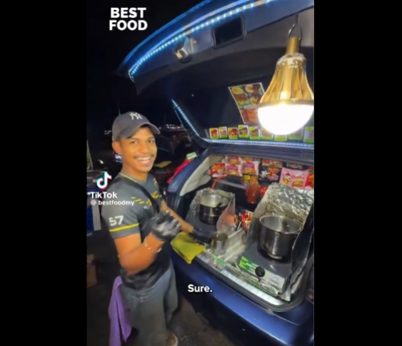 Check out this recent video by netizen @bckupacc99 where a man could be seen cooking Samyang Omelette from a makeshift kitchen which was nothing more than an opened car bonnet.