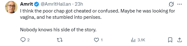 Then there was @AmritHallan coming up with a theory on why the man refused to pay up. A cheeky @kennedypj added, “Services rendered or services misrepresented? IDK, just asking.”