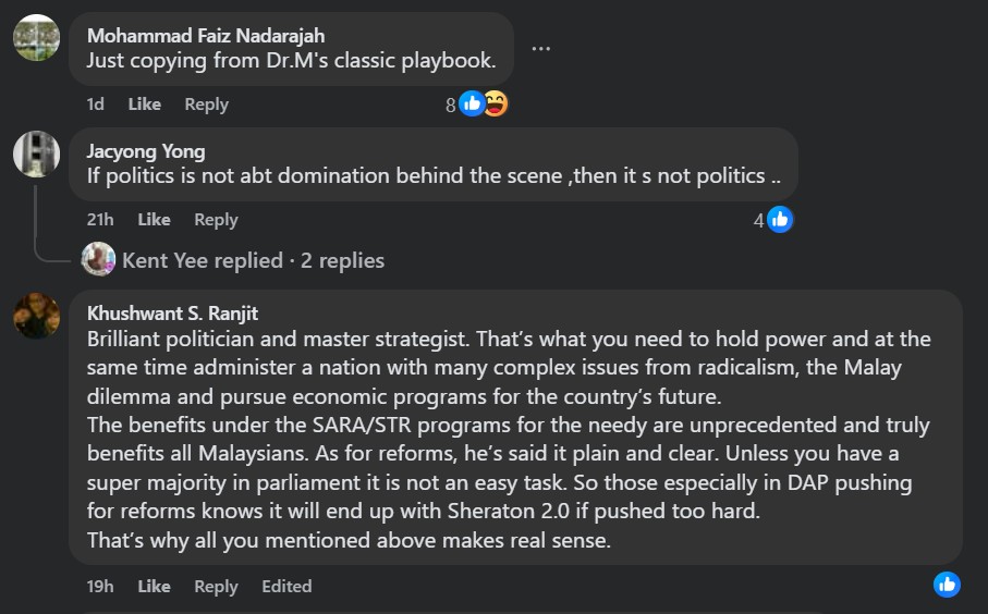 Whether PMX is “just copying from Dr M’s (twice former premier Tun Dr Mahathir M0hamad) classic playbook or otherwise, one commenter praised PMX as a “master strategist.