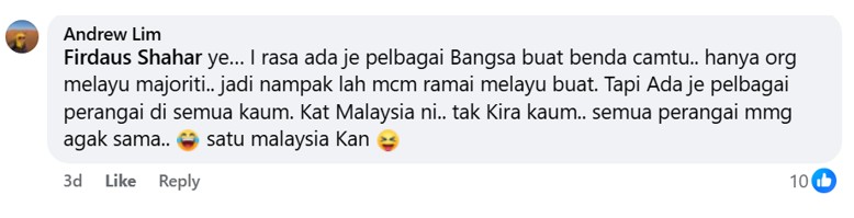 Some felt that in the true spirit of 1Malaysia, such unethical conduct was NOT the sole preserve of one community but rather bad habits displayed by ALL Malaysians.