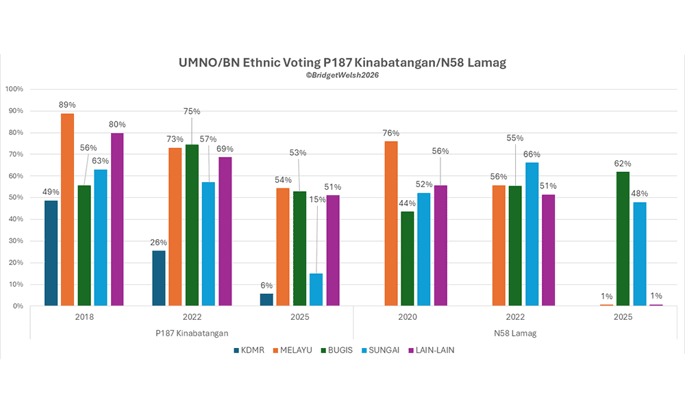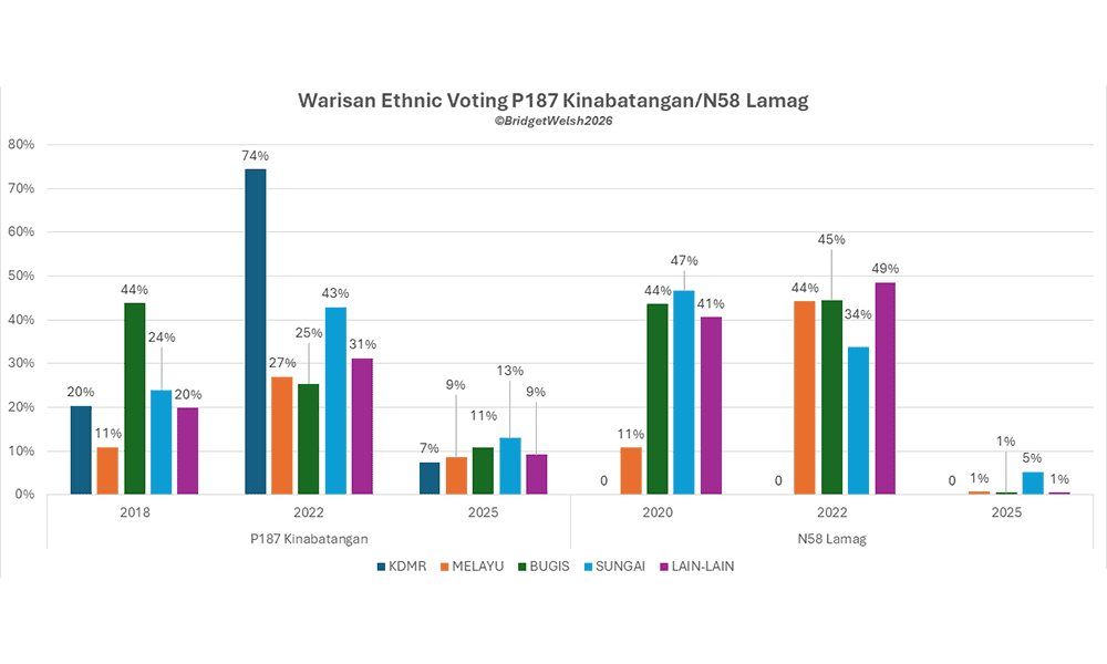 In Lamag, for example, Sungai support dropped by 18 percent. It was the gain in support from Bugis voters that saved Bung, who won the constituency in 2025 by a mere 153 votes.