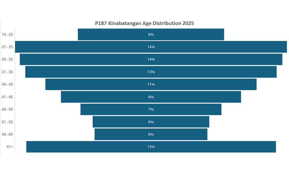 The seat reflects the common pattern of age distribution in Sabah, with over a third of the voters, 36 percent, 30 years old or under.