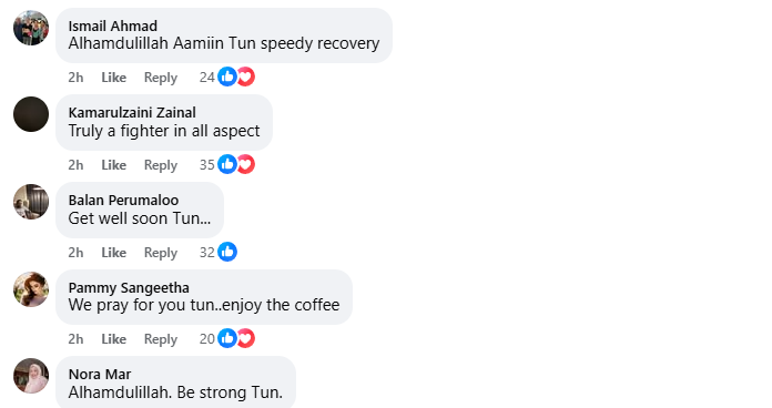 Some, however, hints of sarcasm, as seen in netizen Christopher Chris who said, “Tun, please rest. Don’t politic anymore.”