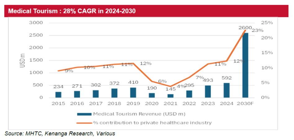 The propensity for medical tourism in Malaysia underpins growth potential for private healthcare operators.