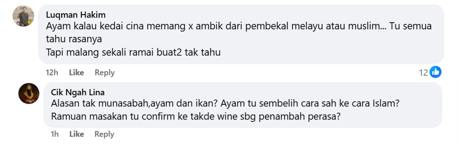 A few questioned the slaughter practices/supplier for the (chicken) meat served at these places as well as “the use of wine as flavour enhancer” with one declaring too many Muslim foodies turn a blind eye to.