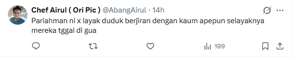 Also, @AbangAirul said such individuals are not qualified to be neighbours to any race, and that they should live in a cave.