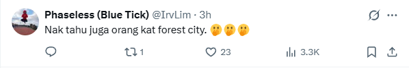 “The people at Forest City need to know it too,” said @IrvLim, hinting at the Mainland Chinese developer who built the massive, futuristic, eco-themed city development on four man-made islands in Johor.