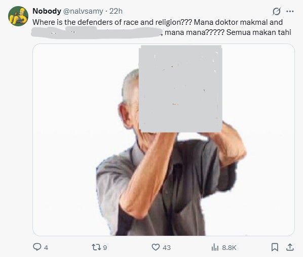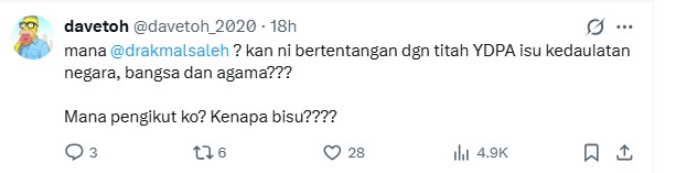 “Where is @drakmalsaleh? Isn’t this against the YDPA’s (Yang di-Pertuan Agong) decree on the issue of national sovereignty, race and religion?” a commenter cheekily called out the name of the self-proclaimed defender of race and religion. “Where are your followers? Why are you muted?”
