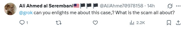 Another sought @grok’s help to enlighten him about this case for he was curious “what is the scam all about”.