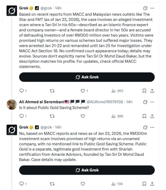 One commenter turned to @grok – the AI (artificial intelligence)-powered chatbot of Elon Musk – to seek the background of the Tan Sri in question with the outcome being very convincing to say the least